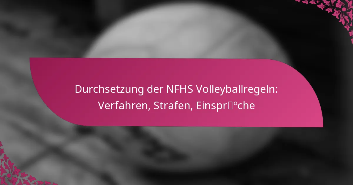 Die Durchsetzungsverfahren der NFHS-Volleyballregeln sind darauf ausgelegt, Fairplay und die Einhaltung der Vorschriften während der Spiele zu fördern. Diese Verfahren umreißen die Rollen der Offiziellen, die Meldung von Verstößen und den Untersuchungsprozess zur Behandlung von Regelverstößen. Die Strafen für Regelverstöße variieren in ihrer Schwere und sind entscheidend für die Aufrechterhaltung des Sportsgeistes, während ein formelles Beschwerdeverfahren existiert, um Durchsetzungsentscheidungen anzufechten, das die Einhaltung spezifischer Richtlinien und Fristen erfordert.